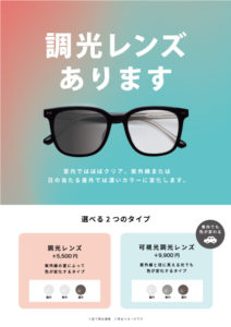 T.G.C.では調光レンズ・可視光調光レンズ好評販売中です!