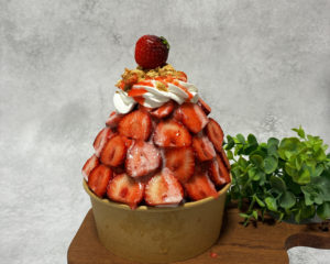 特性の蜜を含めたらおおよそかき氷1杯に4パックほど苺使ってました…驚