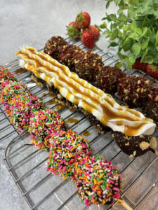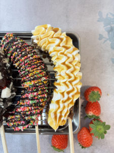 あなたのお好みの組み合わせで、あなたのオリジナルのチョコバナナを作ってみてね!
