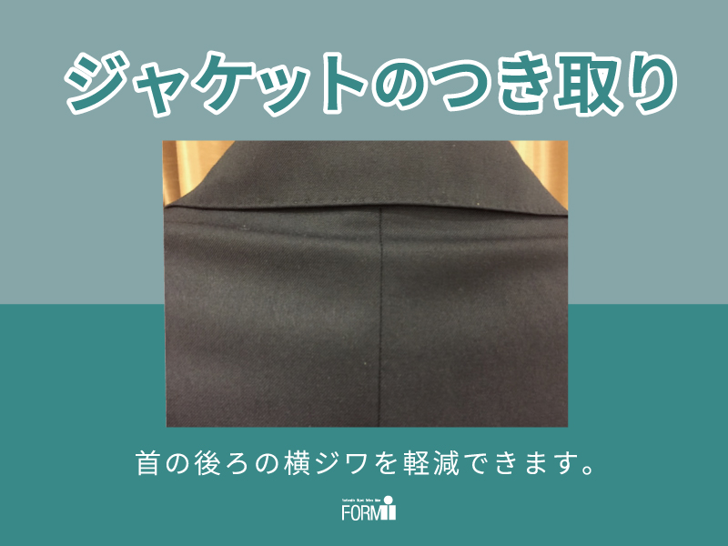 ジャケットの首の後ろのシワが気になる…など、このような症状でお悩みの方は商品をお持ちになりお気軽にご相談ください。